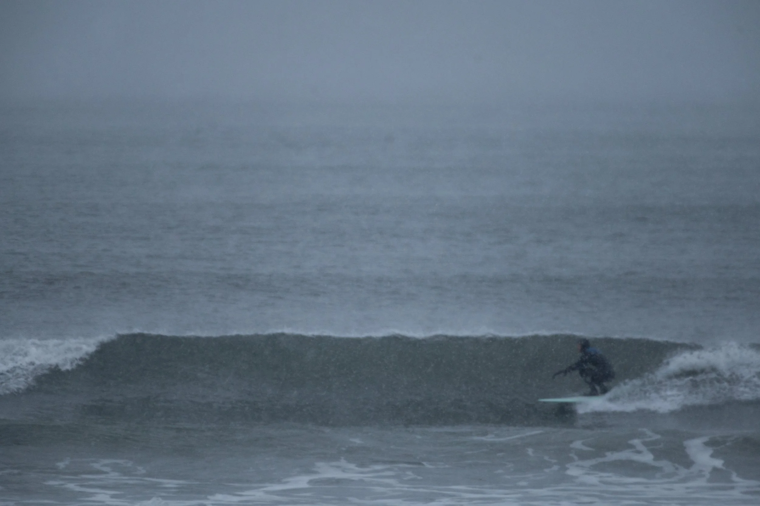Even with a thick quality wetsuit, neoprene hood, gloves and boots it will be difficult for surfers to stay in the sea for very long. Water temperatures in the late fall and winter range between the upper 30s, to low 40s.